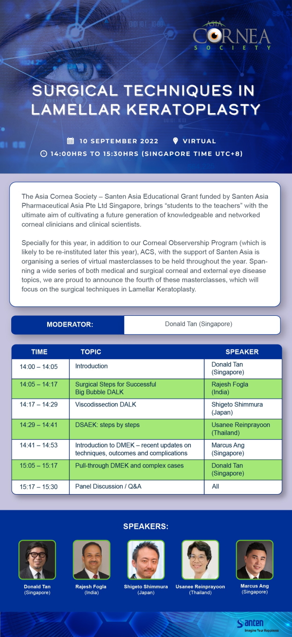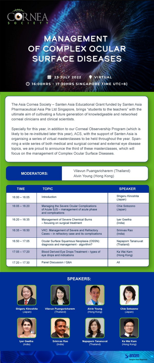 Don't miss this free webinar being provided by Cornea Society in partnership with the Asia Cornea Society.